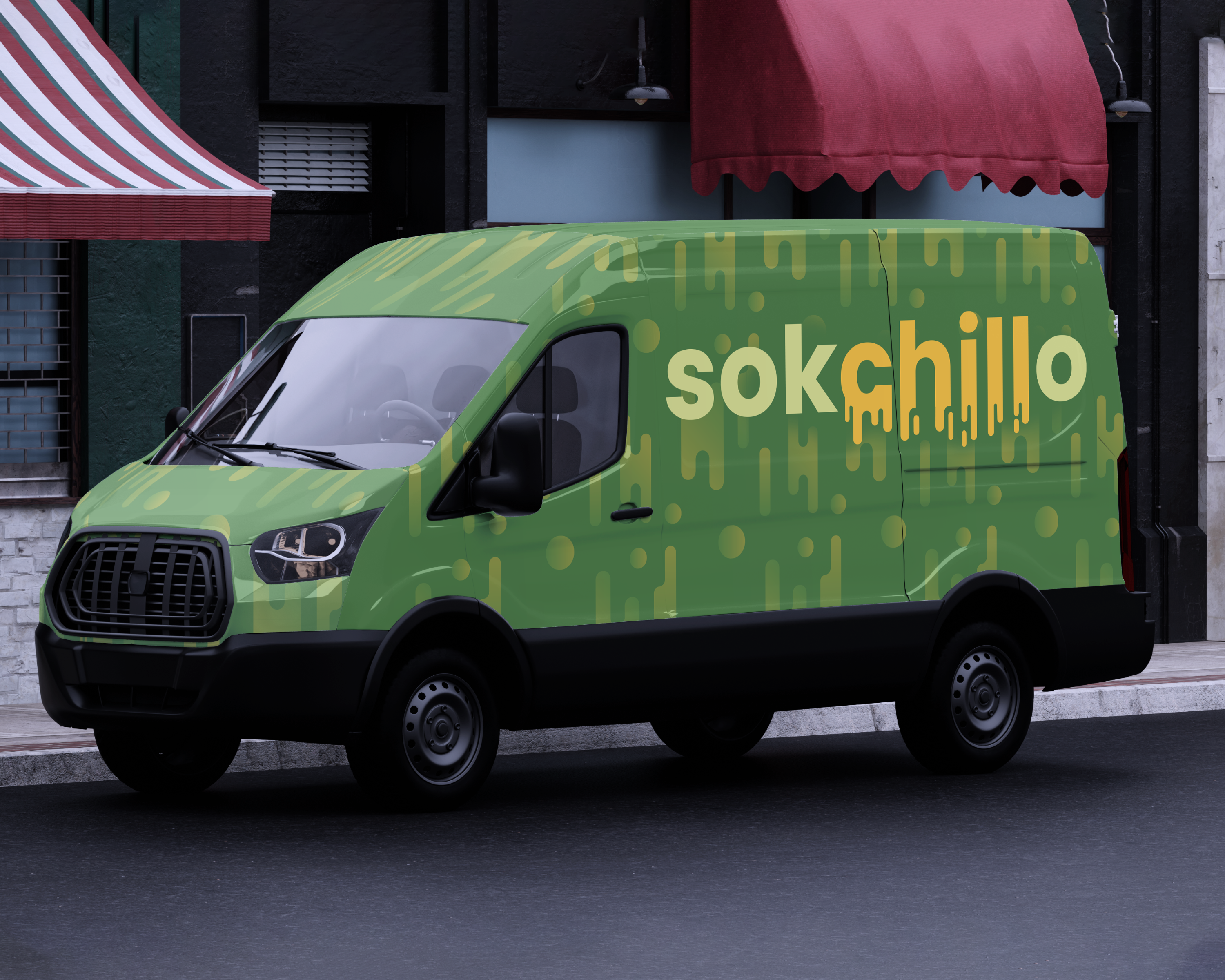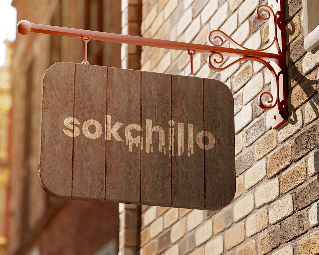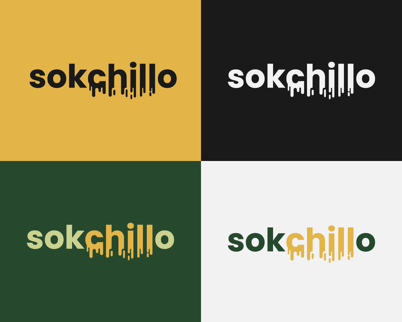Sokchillo je mala kompanija koja se bavi proizvodnjom sveže ceđenih sokova. Naziv brenda se sastoji od dve reči, 'sok' i 'chill', što u slengu znači opuštanje. Upravo su slova te fraze oblikovana tako da izgledaju kao da se 'slivaju', što jasno asocira na tečnost, ali i opuštenost. Kombinacija boja je zelena i narandžasta, što asocira na prirodu i osveženje.
